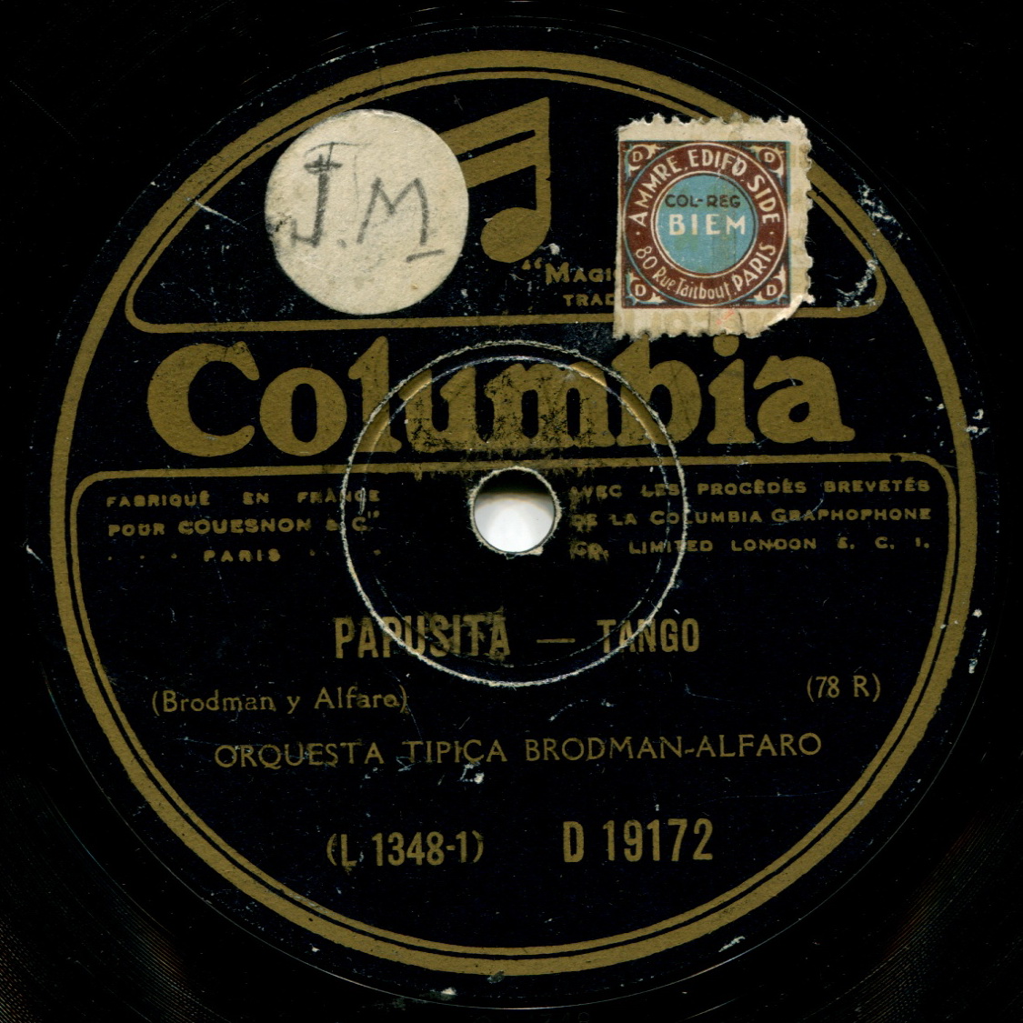 Brodman-alfaro: Columbia D19172 L1348-1 37298